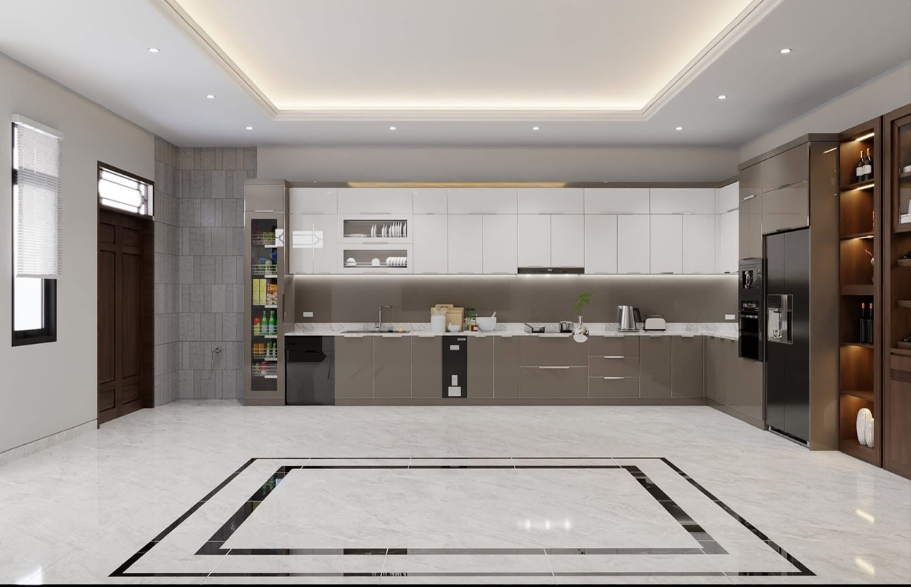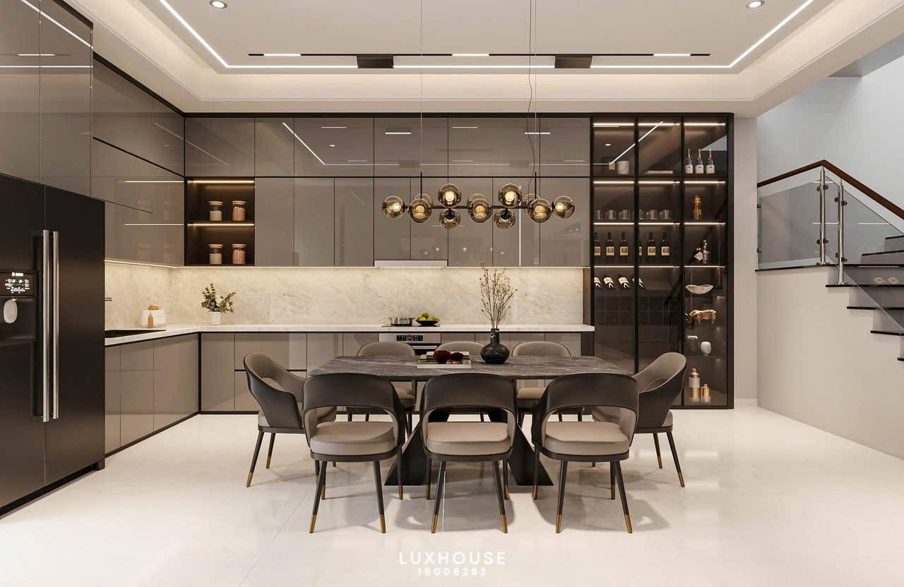 Nhà phố, biệt thự: tủ rượu âm tường cánh kính, tủ bếp chữ L/U rộng rãi