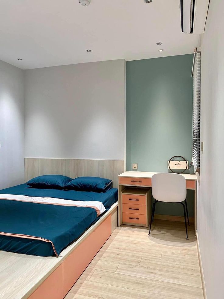 • Phòng ngủ: Giường đơn giản, sử dụng rèm 2 lớp, ánh sáng nhẹ nhàng, gam màu trung tính hoặc pastel